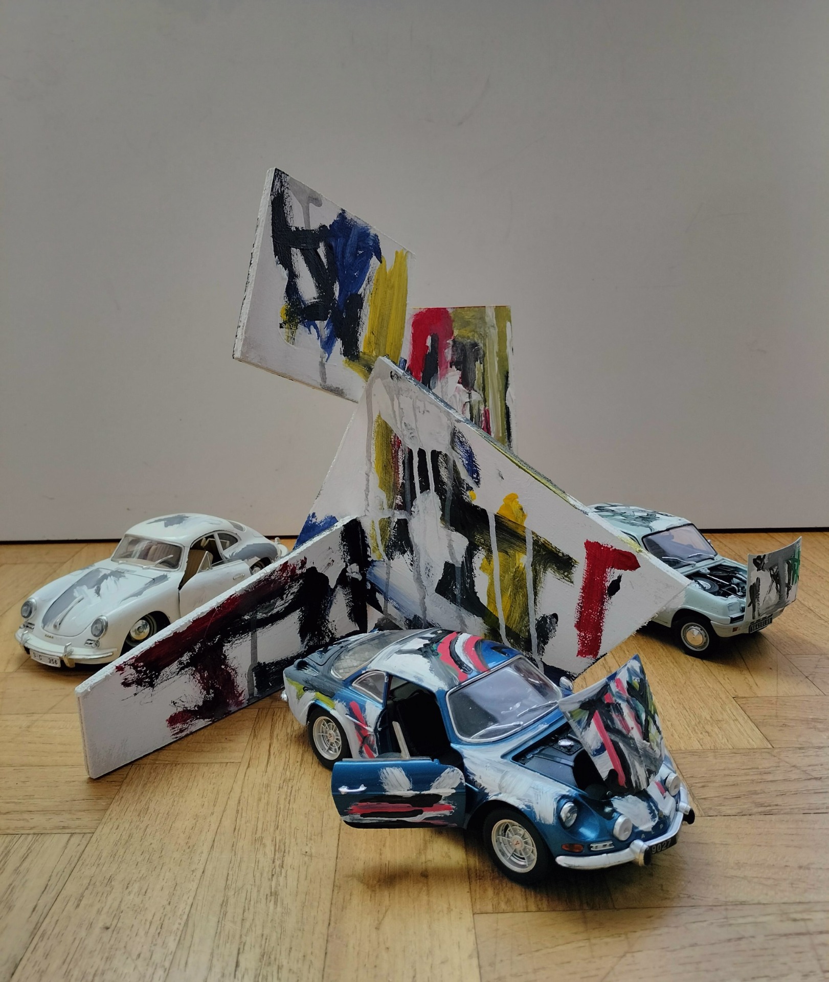 Nella foto Gianluca Petrini e il vice sindaco della città metropolitana di Cagliari, Roberto Mura, hanno in mano una delle prime opere Petrini - Fratellini Margiotta. E' passato del tempo da quando Gianluca, noto artista sardo, ci contattò per chiederci un quadro. "Per noi i nostri quadri sono un gioco, e come i giocattoli ci piace condividerli" e allora cominciammo a scambiarceli e poi a farne insieme, ed ecco che periodicamente opere da completare partono dall'Abruzzo alla Sardegna e viceversa. Un giorno cancellammo a Gianluca mezzo quadro per far spazio ai nostri disegni! "Il quadro distrutto".